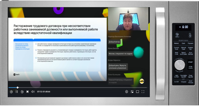 Вебинары и конференции можно смотреть с компьютера, планшета или мобильного телефона. Чтобы слышать спикера, вы можете использовать колонки или наушники для вывода звука. За сутки до мероприятия вы получите письмо со ссылкой на мероприятие, программой и организационной информацией. И еще одно письмо напоминание придет за 15 минут до начала, чтобы вы не пропустили ничего важного! Вы можете обратиться к IT-службе вашей компании, чтобы они проверили, готов ли компьютер к участию в вебинаре. А можете